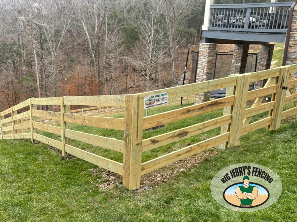 Ranch style gates or farm gates are available in all sorts of styles with options for every design taste, functional application, or budget. Ranch style fences are a common fence type used for residential and agricultural properties located in rural areas. A 2-rail, 3-rail, or 4-rail Kentucky fence and gate can be the perfect aesthetic complement to your home. If your fence is intended to be used for agricultural purposes than a cattle gate or metal tube gate with wire might be the perfect solution for containment of livestock and accessibility to your farm property. Call Big Jerry’s Fencing today for a free ranch style installation or farm gate installation quote today.