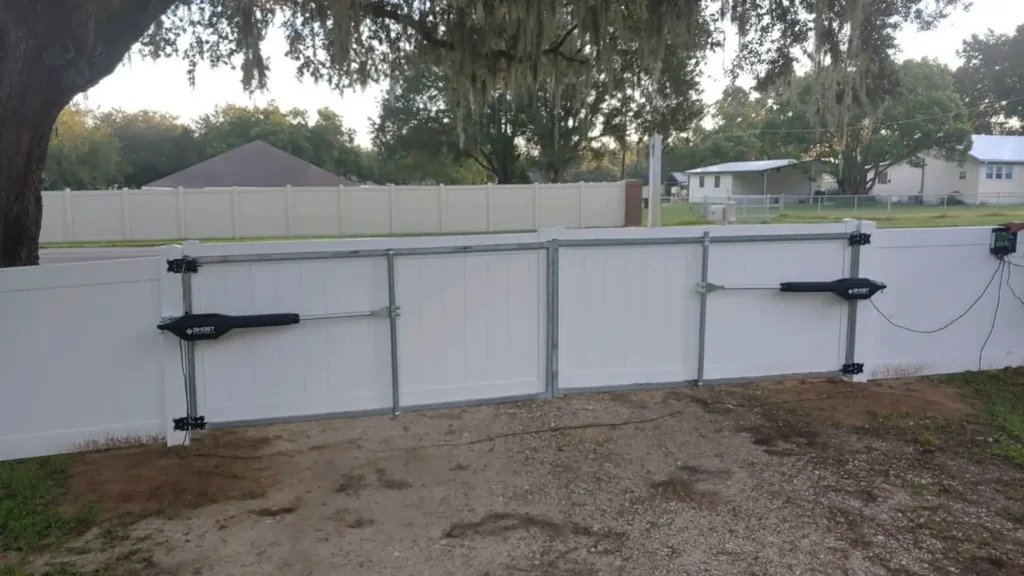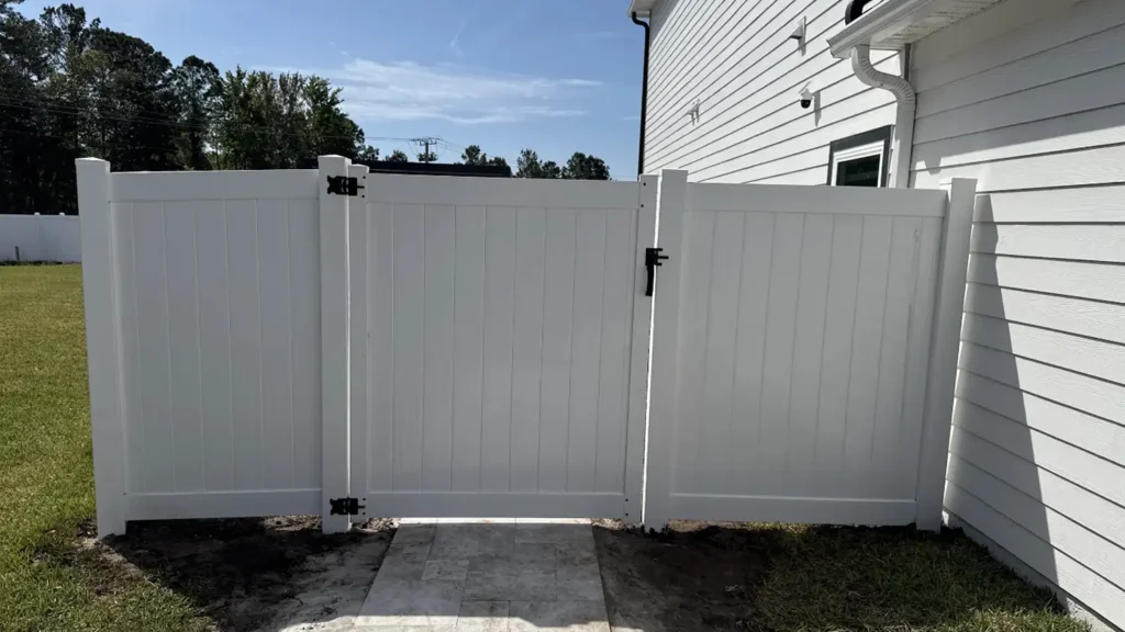 Vinyl gates are a great choice for homeowners looking for a gate that offers durability, low maintenance, and aesthetic appeal. Vinyl gates installations are available in a variety of styles and colors allowing residents to match their home’s design. Vinyl gates are a excellent alternative to wood gate installations because of their long lifespan due to their durability against pests and rot. In addition to the durability benefits, vinyl gates are a lightweight option to provide privacy to your yard ensuring you will enjoy the benefits of your professionally installed gate for years to come.